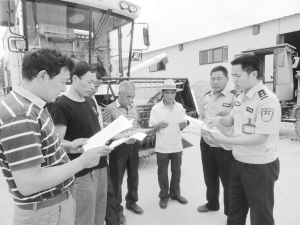 昨日,商水縣舒莊鄉(xiāng)派出所民警正在杜店村遠豐農(nóng)機專業(yè)合作社向農(nóng)機手宣傳“三夏”生產(chǎn)安全知識。為確保“三夏”生產(chǎn)安全,舒莊鄉(xiāng)派出所印發(fā)2000份《三夏安全生產(chǎn)知識宣傳單》,組織民警深入田間地頭和農(nóng)家小院向農(nóng)機手們面對面進行安全生產(chǎn)宣傳。(喬連軍 攝)