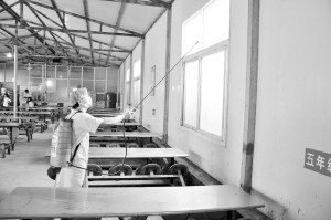 “這個(gè)藥品叫順氯·殘殺威,對消殺蚊蠅有很好效果,作用可以持續(xù)3個(gè)月左右。這會兒食堂里有刺鼻的味道,但十幾分鐘后基本上就聞不到了?!笔屑部刂行南究瓶崎L胡偉說,這次用于消殺蚊蠅的都是高效、低毒的藥物,對人體危害不大。如果學(xué)生不小心觸摸到了,只要用清水洗掉即可,不用過于擔(dān)心。
