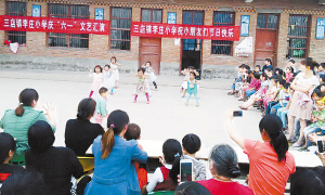 左圖 兒童節(jié)前夕,項(xiàng)城市積極組織小學(xué)、幼兒園開展慶“六一”活動,讓小朋友享受更多的歡樂和溫暖。圖為三店鎮(zhèn)李莊小學(xué)的孩子正在表演節(jié)目。(張永久 攝)