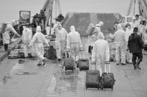 ?。箷r(shí),交通運(yùn)輸部部長(zhǎng)楊傳堂宣布哀悼活動(dòng)開(kāi)始。在沉船救援現(xiàn)場(chǎng)仍在參與救援的所有人員停下手上工作,脫帽佇立,面向遇難船舶默哀,包括數(shù)十家媒體新聞工作者在內(nèi)的其他在場(chǎng)人員紛紛低頭,肅立致哀。同時(shí),停泊在附近水域的所有船舶拉響鳴笛,途經(jīng)沉船救援現(xiàn)場(chǎng)的船只也放慢速度,鳴響汽笛。