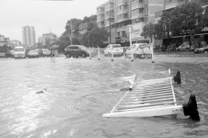 廣西、江西等地遭遇持續(xù)強降雨 中央氣象臺繼續(xù)發(fā)布暴雨藍色預(yù)警      6月14日,在江西宜春明月北路,路面交通護欄被洪水沖倒。6月13日起,廣西、江西等地遭遇大范圍強降雨。中央氣象臺14日10時繼續(xù)發(fā)布暴雨藍色預(yù)警,預(yù)計14日14時至15日14時,湖南東北部和中部、湖北東南部、安徽南部、江西北部、福建西北部、浙江大部、上海以及西藏東南部、云南西部和東南部、廣西北部、廣東中北部、海南南部等地的部分地區(qū)有大雨或暴雨。新華社發(fā)