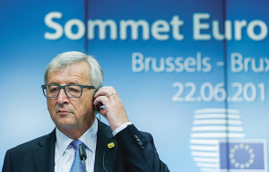 6月22日,在比利時(shí)布魯塞爾的歐盟總部,歐盟委員會主席容克在歐元區(qū)領(lǐng)導(dǎo)人緊急峰會后出席新聞發(fā)布會。 歐洲理事會主席圖斯克在會后新聞發(fā)布會上說,希臘提交的新版改革方案是“積極的一步”,歐元集團(tuán)將于24日完成對新方案的評估。