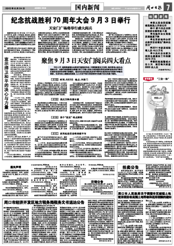 紀(jì)念抗戰(zhàn)勝利70周年大會(huì)9月3日舉行