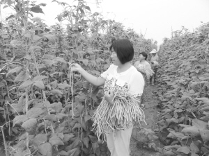 7月4日,商水縣舒莊鄉(xiāng)一農(nóng)民種植專業(yè)合作社的社員們正在摘豆角。該合作社今年種植麥瓜套、蒜瓜套和豆角120多畝,畝均收入在4000元以上。近年來,舒莊鄉(xiāng)調(diào)整產(chǎn)業(yè)結(jié)構(gòu),拓寬農(nóng)民增收渠道,推進現(xiàn)代農(nóng)業(yè)發(fā)展,健全服務體系,創(chuàng)建了瓜菜生產(chǎn)基地、良種繁育基地、苗木生產(chǎn)基地等,開辟了一條農(nóng)業(yè)增收、農(nóng)民致富的新途徑。
