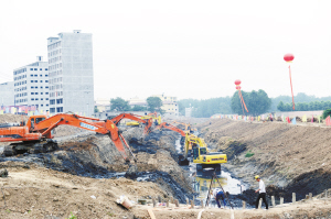 5月14日以來,在新一屆縣委的統(tǒng)一部署下,經(jīng)過廣大干群的共同努力,城區(qū)風景河、護城河、閆溝河、鹿辛運河、急三道河,五河河流集中整治取得了顯著成效。圖為城區(qū)急三道河第二階段清淤、雨污分離工作正在緊鑼密鼓地進行。(閆子健 攝)