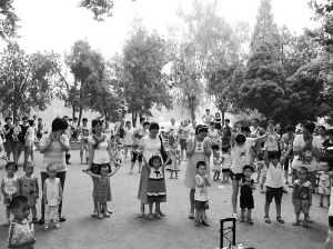 日前,周口東方愛嬰早教中心開展戶外活動,培養(yǎng)孩子從小學會“分享”和社會交往。家長們帶著食物,讓孩子和其他小朋友分食。圖為家長和寶寶在表演節(jié)目。