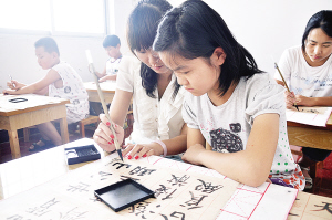 書畫相輔相成 為弘揚“書畫同源”的中國傳統(tǒng)藝術(shù),本中心常年班采取書畫相輔相成的教學(xué)方法,毛筆與硬筆相結(jié)合、書法與繪畫教學(xué)交替進(jìn)行,以求事半功倍的教學(xué)效果。
