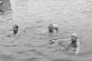 伸伸腰,扭扭腿……下水前,大家都要活動筋骨,避免發(fā)生意外。根據(jù)分組,大家按照次序來到河邊,聽到口令后,一個個魚躍河中。14歲的張毅來自許昌代表隊,賽后他激動地對記者說:“我很久之前就開始接觸游泳了,但是冬泳剛剛練習了3年,參加這樣的比賽很開心。”記者采訪發(fā)現(xiàn),冬泳愛好者比賽結(jié)束后很少關(guān)心自己的成績,他們說得最多的是“爽”。一位冬泳愛好者告訴記者,比賽成績不重要,重要的是這項運動能培養(yǎng)人的意志力以及使人保持開朗樂觀的生活態(tài)度,這才是他所追求的。