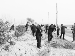 市委書記徐光與干部群眾一起植樹添綠。晚報記者 張勁松 攝