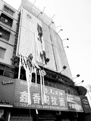 4月9日上午,在周口市區(qū)七一路與大慶路交叉口,兩名工人忙著整修廣告牌,他們“攀附”在墻上的身影,如同電影里的“蜘蛛俠”,讓過往市民無不敬畏勞動者的辛勞與偉大。晚報(bào)記者 張志新 攝